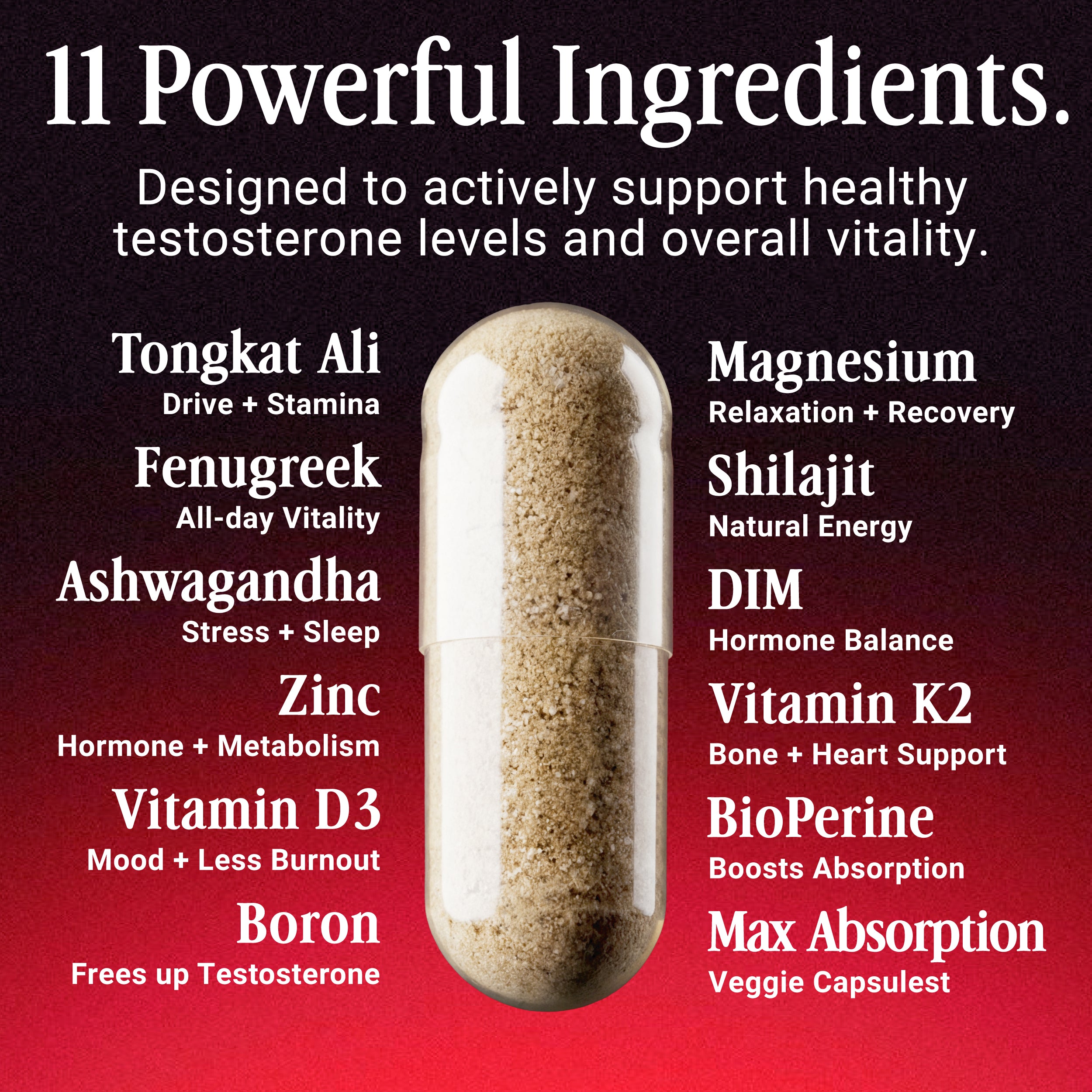 Time to support your testosterone and vitality with a daily formula built on clinically studied ingredients in a 11-1 supplement.
